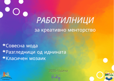 Работилниците за креативно менторство оваа година започнуваат со реализација на 29.03.2022 и ќе траат до 31.05.2022.